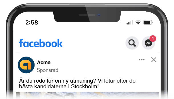 Nå ut till kandidater som inte redan följer dig och marknadsför dina annonser, rekryteringsevent och karriärsida. Monsters Social Job Ads är uformade för att nå toppkandidater, driva mer trafik till dina annonser och öka synligheten för ditt arbetsgivarvarumärke på sociala medier.